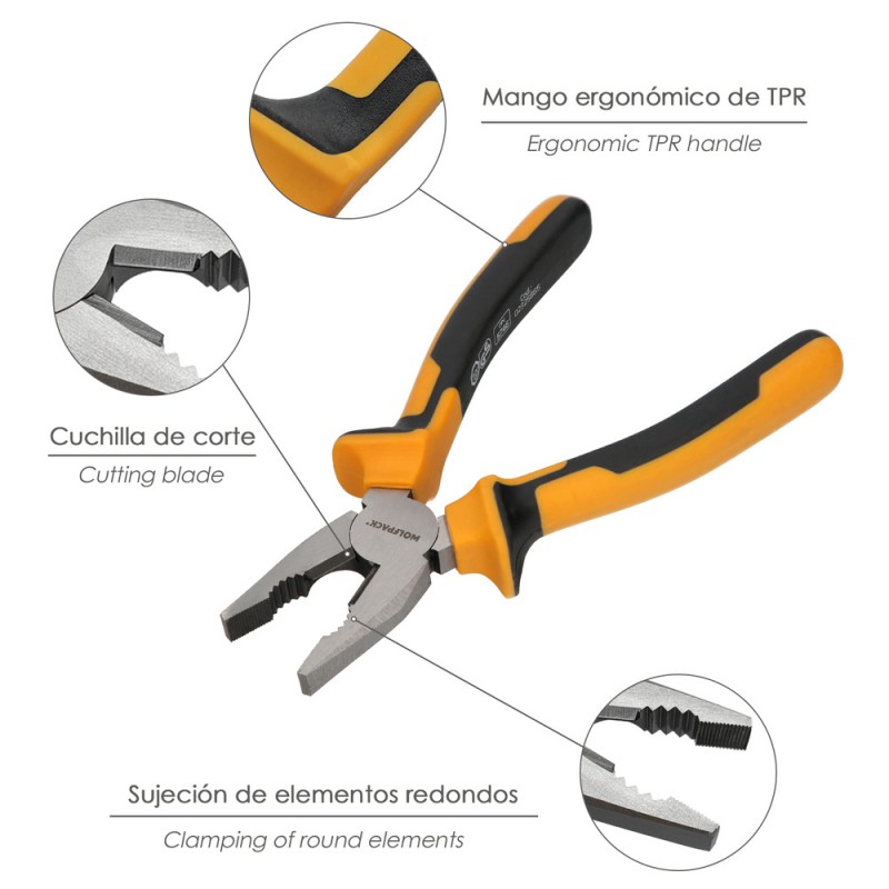 - Mango ergonómico realizado en TPR, con base de plástico y agarre engomado.