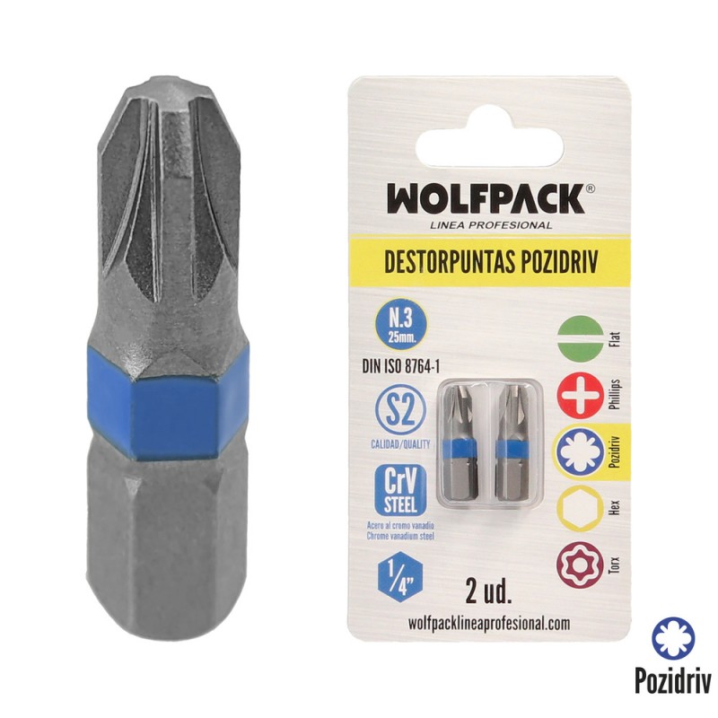 Destorpuntas Pozidriv Nº 3 (2 Piezas) Acero S2 al Cromo Vanadio