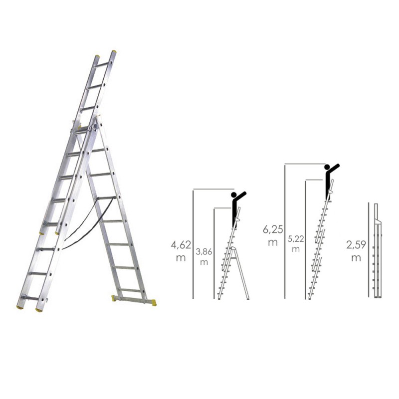 Escalera Aluminio 3 Tramos 9+9+9 Peldaños