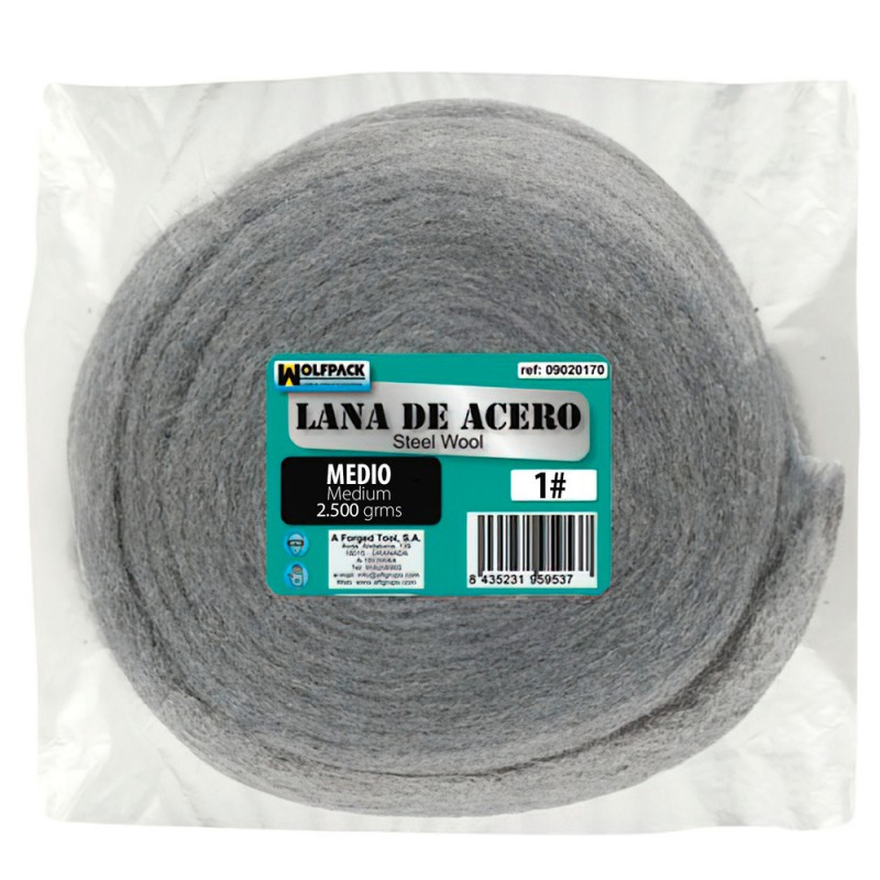Lana de acero.- Grano medio grueso.- Peso: 2500 gr.- Medio 1