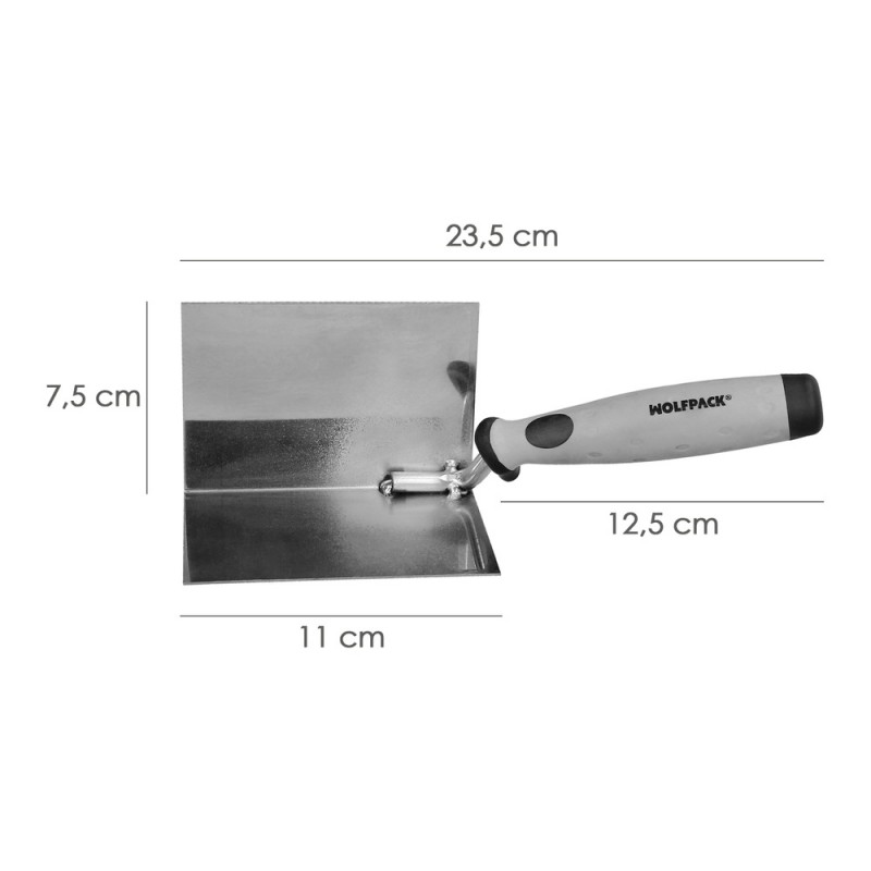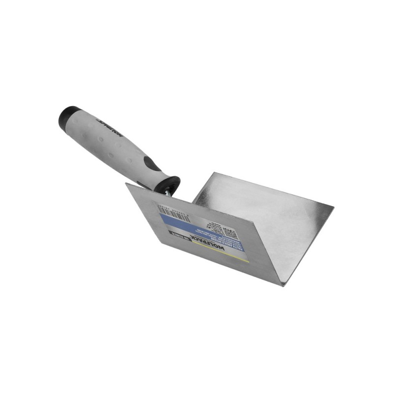 - Presentando un ángulo perfecto de 90 grados, esta paleta esencial es ideal para aplicar masilla en esquinas internas con una facilidad sin igual.