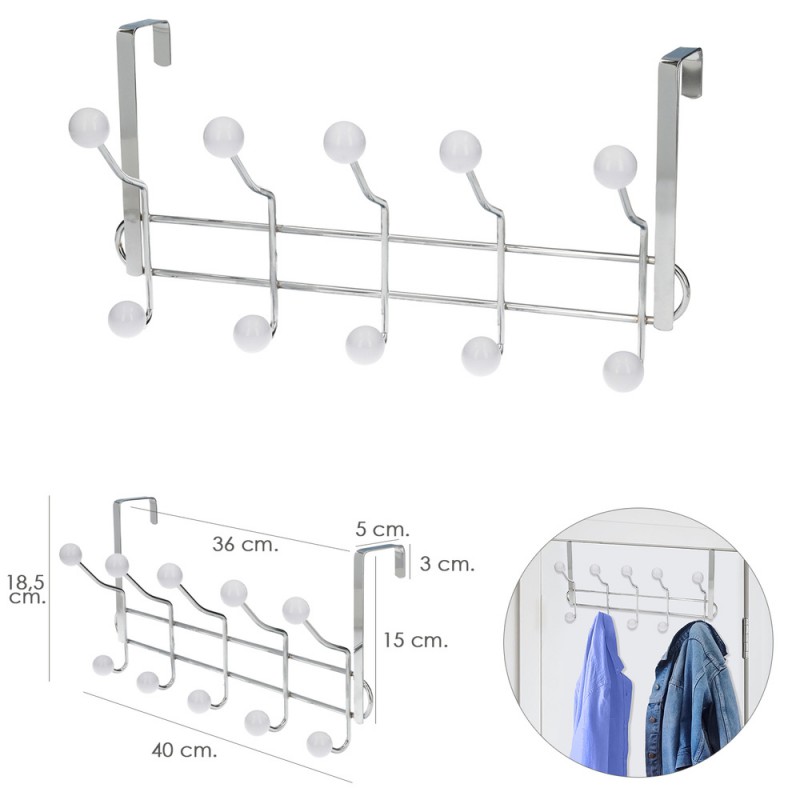 - Perchero para puertas con 10 ganchos individuales o 5 ganchos dobles.