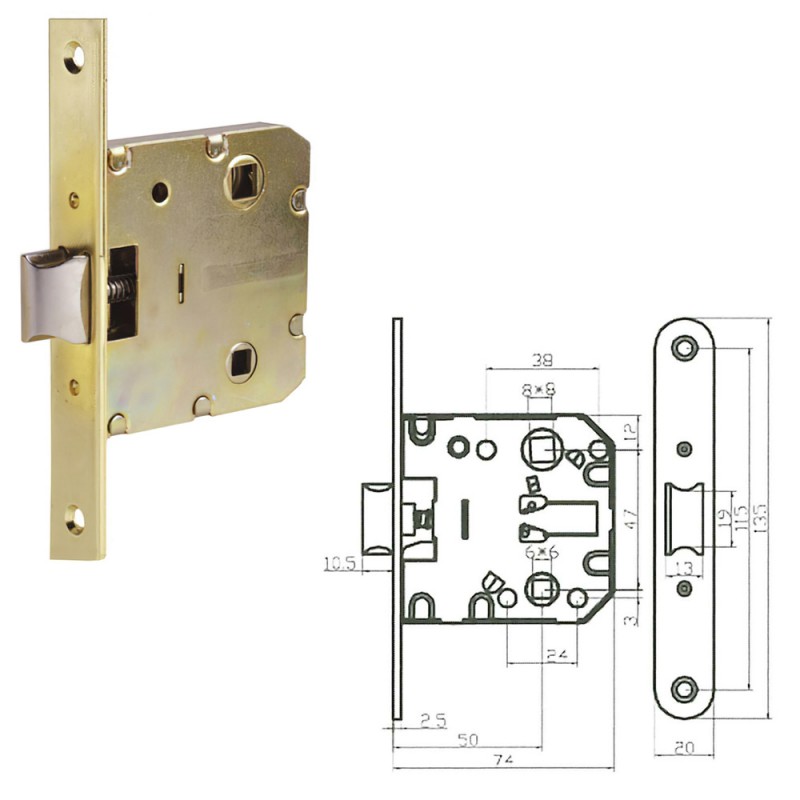 Picaporte Wolfpack 2000- 50 Hierro Latonado Canto Cuadrado
