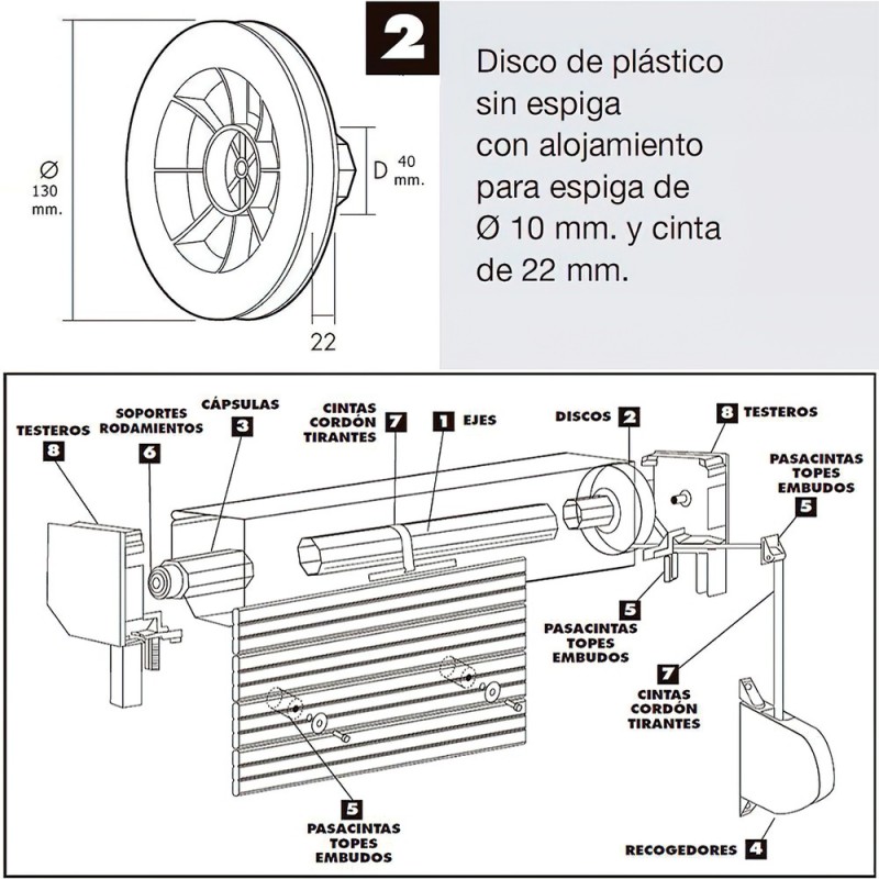 Disco Persiana Plastico Octogonal 130x40 mm. Cinta 22 mm.
