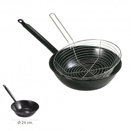 Sarten Esmaltada Con Mango Ø 24 cm. Con Cestillo Freir