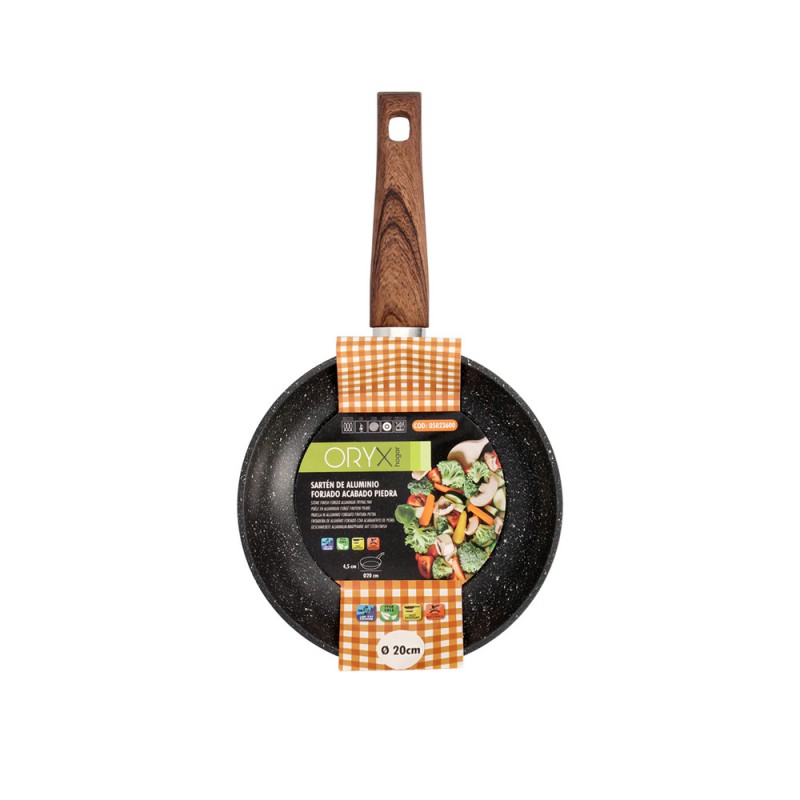 Sarten Aluminio Forjado Antiadherente Acabado Piedra Ø 20 x 4,5 cm. Mango Engomado