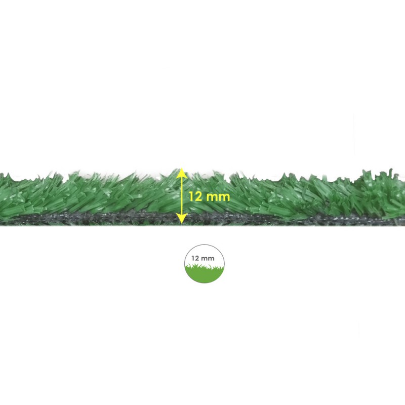 - Césped artificial de alta densidad con una altura de 12 mm.